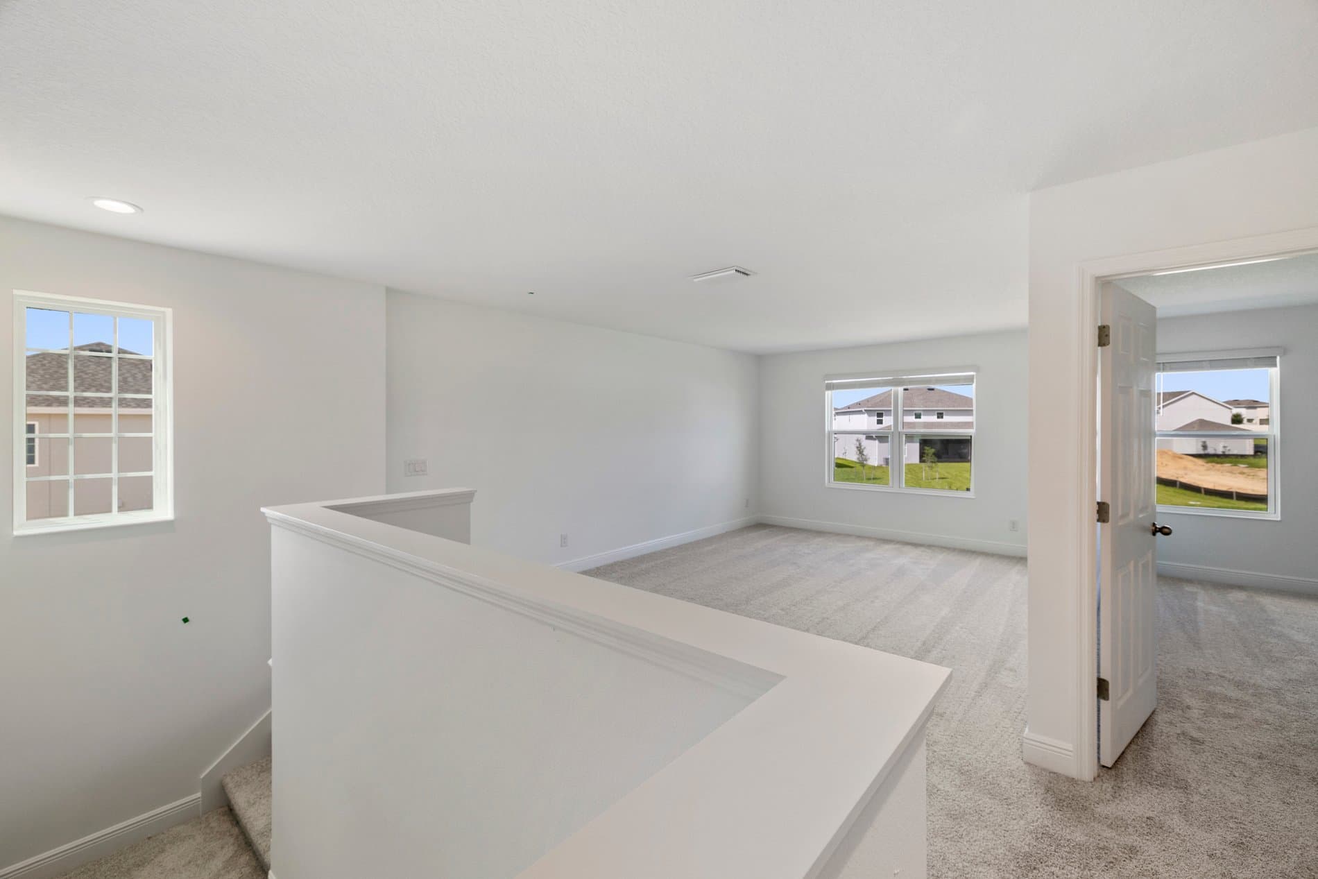 The Newcastle is a two-story home designed for functionality and connection. The first floor features a spacious living room that can serve as a formal dining area, office, or game room. A generous kitchen opens to the dining and living spaces, as well as a covered lanai—perfect for entertaining. Upstairs, you’ll find all bedrooms, the laundry room, and a large gathering space ideal for a playroom, media room, or home gym. The Newcastle offers flexible living for every lifestyle.